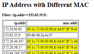 Both respond to ARP, so the IP flips between different MACs in the trace.