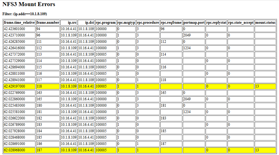 Three fields rpc.replystat, rpc.state_accept, and mount.status