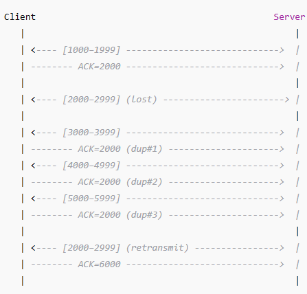 If a segment is missing, the receiver continues to ACK the last contiguous byte it received → this produces duplicate ACKs (ACK with the same number).