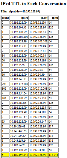 If one path has more hops, the TTL when arriving at your capture point will be lower.